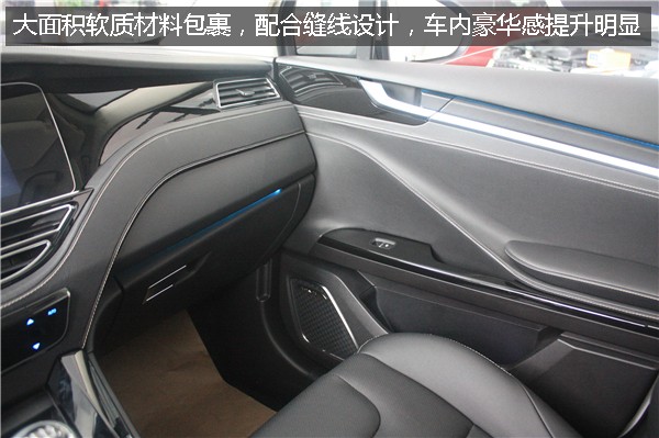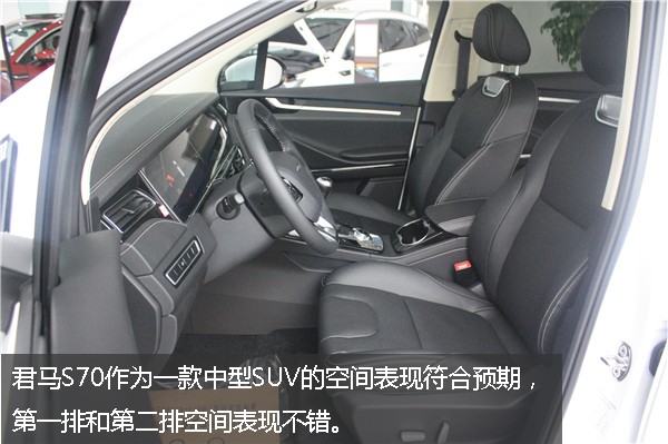比起其他自主车型,君马S70内饰豪华,君马S70的内饰最大的亮点是25英寸仪表盘+中控屏的贯穿式双屏设计,贯穿式的大尺寸液晶屏,分别显示仪表盘的信息和娱乐系统信息,大多数功能都可以通过触摸方式来操控;两块大屏幕占据了中控台一半以上的空间,看着很酷炫,功能也比较全面,同时可以提升它的科技感。整体设计方面它的中控台也比较厚实,各项功能区划分的比较清楚,用料也是仿皮+缝线的材质。