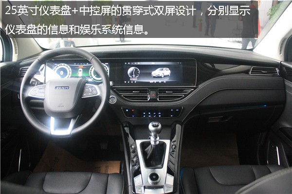 1月17日,君马S70正式上市,君马S70作为自主品牌的一款量产车型却配备了一款25寸液晶大屏,这块使仪表盘和中控屏连为一体的中央大屏堪称君马的最大亮点。这块贯穿式的大尺寸液晶显示屏分别显示仪表盘的所用信息和娱乐系统信息。像这样的大屏目前在国内车型上还很难找到,其科技感和豪华程度堪比走在科技前沿的特斯拉。