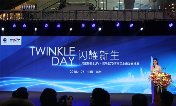 河南车网讯:2018年1月27日,君马汽车旗下首款战略车型——大尺度轿跑SUVS70在河南闪耀上市,以81900元至115900元亲民价格越级而来。其“越级的车身尺寸、同级首创25寸矩阵式高清大屏、全系标配豪华全景天窗”和远超同级的“7年15万公里质保”及新车易购金融政策等,全面刷新了中型SUV市场的标准,将为年轻族群带来超越期待的出行体验。