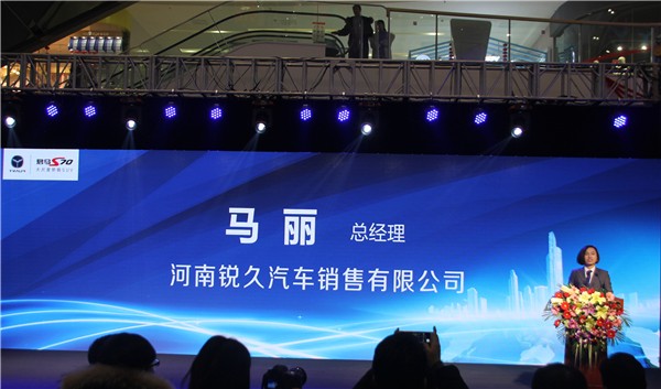 全国首家君马汽车体验店河南锐久4S店总经理 马丽女士致辞