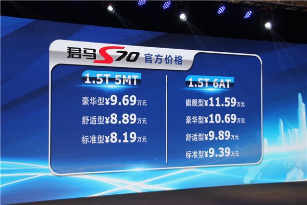 君马S70官方指导价公布