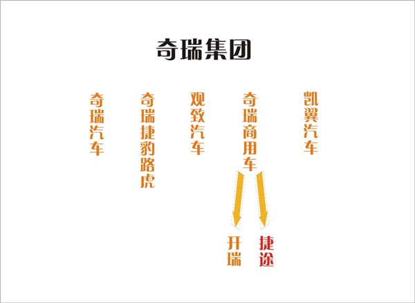 奇瑞目前有乘用车旗下的高端品牌奇瑞捷豹路虎和观致,中端品牌奇瑞,商用车旗下的低端品牌凯翼和商用车品牌开瑞,而捷途则是奇瑞商用车旗下的乘用车新产品系列。看了以上信息也许您还没太明白捷途的真正位置。那么在来看看这张图。