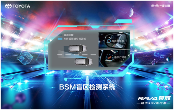 就像RAV4荣放,其搭载的BSM盲区检测系统,随时检测驾驶者视线盲区内的车辆,这样一来在行驶过程中就能一路驰骋,顺利通关,不会掉入车辆盲区哦。
