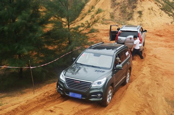 哈弗H9-8AT能够在沙地里面如履平地的一个原因在于,这款车搭载全新调校的全地形控制系统,采用双速TOD智能四驱后桥电子差速锁,应对泥地、沙地等多种综合路况更加轻松,调试完毕后,缓慢启动油门就出发了。