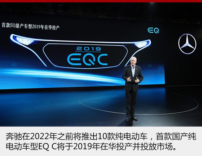 奔驰在新能源汽车技术研发、工厂设施建设方面投入了225亿欧元的资金。从2018年开始,新能源产品将以紧密的节奏推向市场,并在2022年之前推出10款纯电动车。在华的新能源战略也将于明年正式启动,届时,奔驰首款国产纯电动车型EQ C将于2019年在华投产并投放市场。