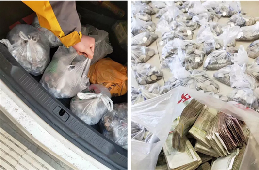 “大概有2万块钱,都是一元或几毛的硬币和零钞。”赵先生说,他想用这些硬币支付车款首付。4S店立即安排数钞,并联系当地银行帮忙数钱,失败后又找到了一家超市,和超市工作人员齐心协力把钱数清了。