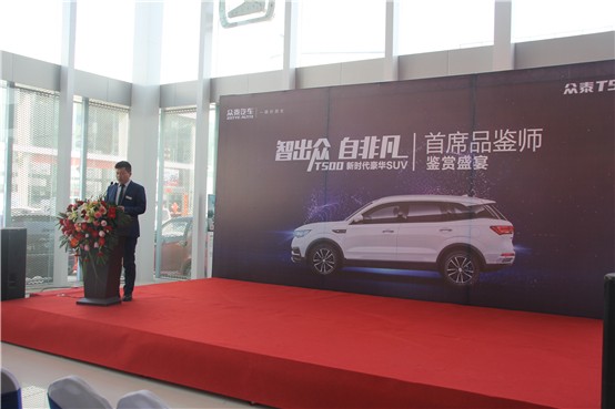 2018年3月3日,一场以智出众,自非凡为主题的众泰T500新时代豪华SUV首席品鉴师鉴赏盛宴在河南海日汽车销售有限公司举办。众泰T500在众多主流媒体的见证下展露英姿。