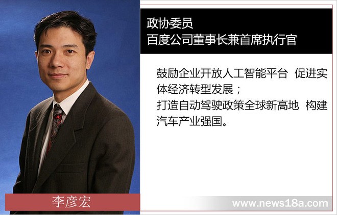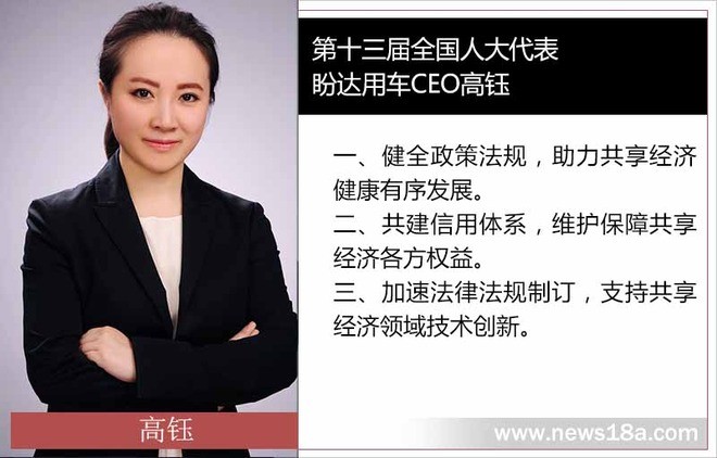 第十三届全国人大代表、盼达用车CEO高钰,政协委员、百度公司董事长兼首席执行官李彦宏分别对政府工作报告提出关于共享汽车和人工智能汽车提出建议。