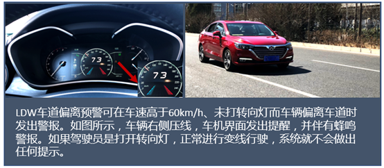 行车途中,疲劳驾驶容易出现偏离车道的情况,全新绅宝D50的LDW车道偏离警示功能,会在驾驶员不打转向灯进行并线操作时,自动报警进行提醒,避免危险发生。