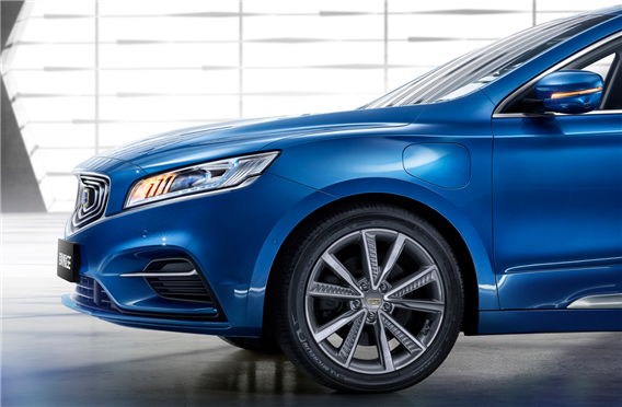从侧面看,博瑞GE采用了溜背式车身设计,凌厉流畅的腰线从车头一直延伸到车尾,搭配状如飞梭的双五幅轮毂,使得这款旗舰轿跑更具运动风范。同时,这种流线型外观也可有效降低风阻,提升其能效和续航里程。前翼子板上的充电接口与后翼子板上的燃油接口,则寓示着博瑞GE将拥有插电混合动力。