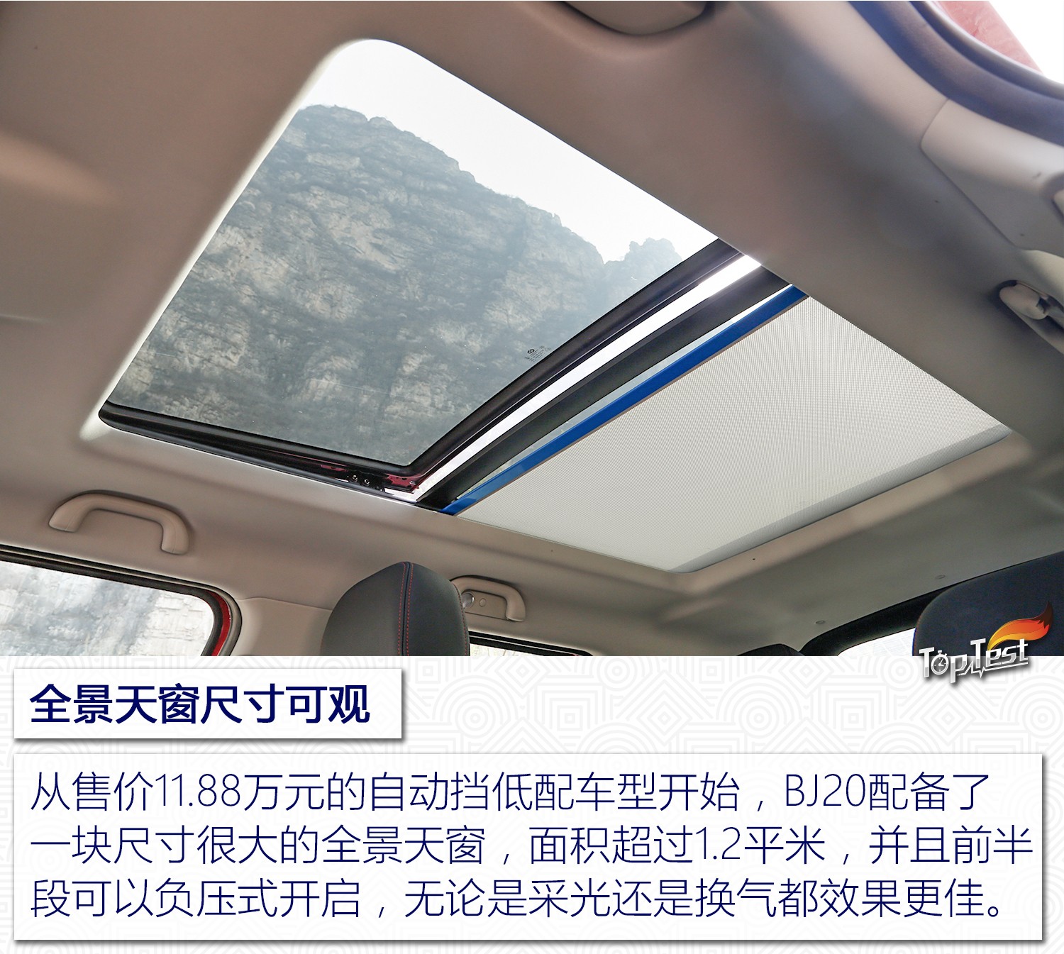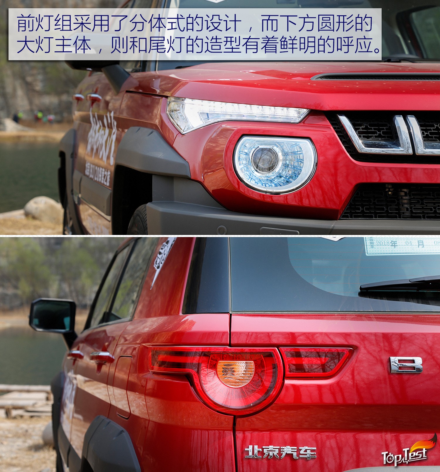 不避讳的说,外观是我觉得这台车最大的卖点。或许有人接受不了这样的风格,觉得设计上太过生硬、少了些时尚元素,但是要知道,还有很多人或许有一个拥有越野车的愿望,考虑到实用性、舒适性放弃了购买越野车的打算,但是又不甘心于买一台缺乏个性的城市SUV,如此一来,BJ20似乎很符合他们的需求。