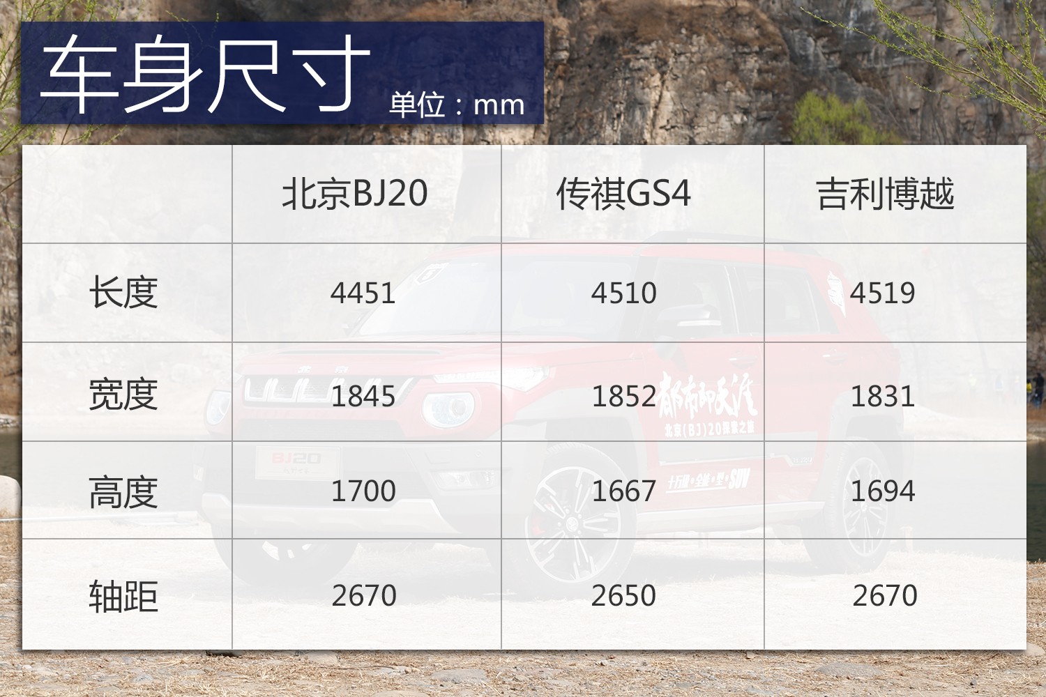 和定位纯粹的硬派越野车BJ40或BJ80不同,BJ20其实是一台采用了承载式车身的城市SUV车型;而作为BJ系列中的一员,它方正、硬朗的造型又极富越野气息,似乎和它城市SUV的身份有些不符。不过,这样一对矛盾的存在恰恰正是BJ20的卖点所在——对于那些深怀BJ情怀的城市用户来说,BJ20可能是在考虑到实用性与舒适性之后的一个平衡之选。