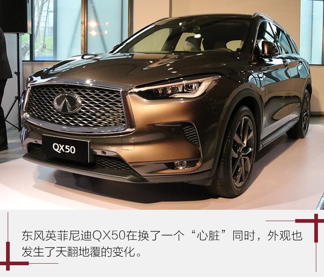 QX50是英菲尼迪旗下中型SUV,于2013年正式上市,而在2015年3月引入国内生产。QX50在豪华汽车市场中打拼了4年时间,在2017年11月进行了大幅升级。随着全新QX50在海外上市,国产版车型也将换代升级。4月13日,在英菲尼迪向清华大学汽车工程系捐赠VC-Turbo发动机的活动上,全新2.0升VC-Turbo发动机首次在公众面前亮相,搭载这台高性能、高效能发动机的东风英菲尼迪全新QX50,也在此次活动上露出真容。