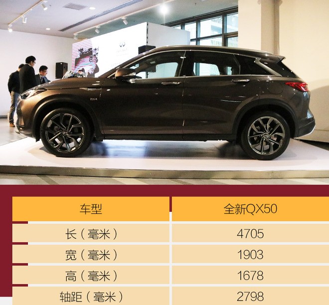 根据此前的申报信息,东风英菲尼迪全新QX50长宽高分别达到4705*1903*1678毫米,轴距达到2798毫米。与现款车型相比,新车长度、轴距分别缩短了39毫米和82毫米,宽度、高度分别增加100毫米和64毫米。不过由于发动机布局变化,新车在轴距和长度缩短的情况下,依旧能满足消费者对车内空间的需求。