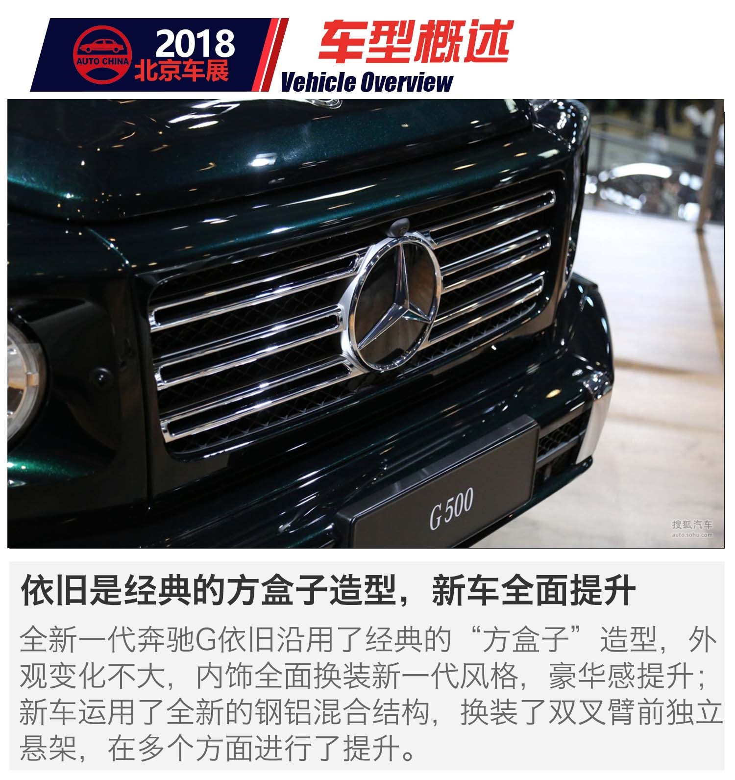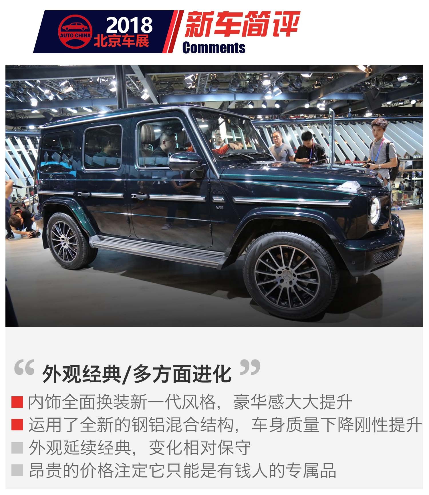 在2018年北京车展上,奔驰正式发布了全新一代奔驰G级,虽然外观依旧延续老款经典的方盒子造型,但在细节上融入了更多前卫设计元素,让整体看起来更加精致。新车在内饰设计、车身结构等多方面进行升级,在延续经典的同时增加了更多的看点和卖点,预计今年年内正式国内上市。