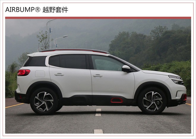 东风雪铁龙SUV天逸 C5 AIRCROSS外观整体与现款车型保持一致,飞翼式进气格栅配以“Air wing”天翼灯组,整体具有辨识度;AIRBUMP® 越野套件及大量撞色设计等元素,突显该车“独特”外观。新车侧窗周围采用“C”字型镀铬饰条装饰,同时A柱与D柱进行熏黑处理。此外,这款SUV车顶配有冲浪板式双色行李架。