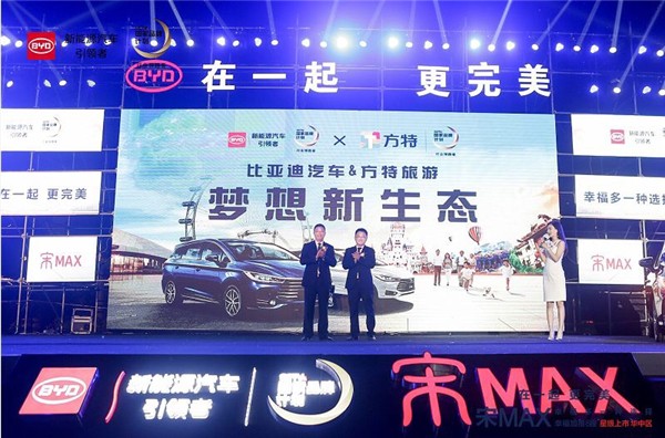 发布会现场,比亚迪汽车与方特共同宣布达成战略合作伙伴关系,全面整合方特旅游及娱乐产业资源,携手打造汽车旅游娱乐新生态,让幸福和欢乐在一起更完美!