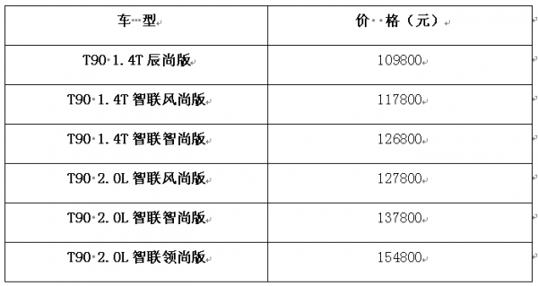 启辰T90 2018款官方指导价