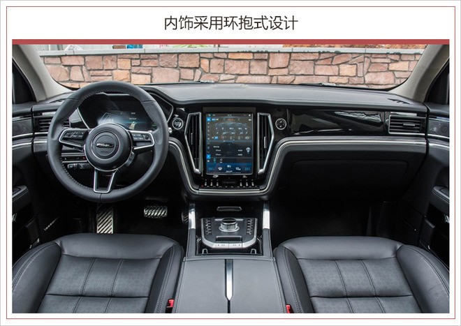 内饰方面,新车内饰采用环抱式设计,配备少量实体按键,布局简洁时尚。中控台配备车内彩色氛围灯,中央竖置式10.4寸液晶显示屏,搭配7寸全液晶仪表与旋钮式换挡机构,营造出极强豪华感与科技感。三辐式方向盘采用皮质包裹,并设有多功能按键。
