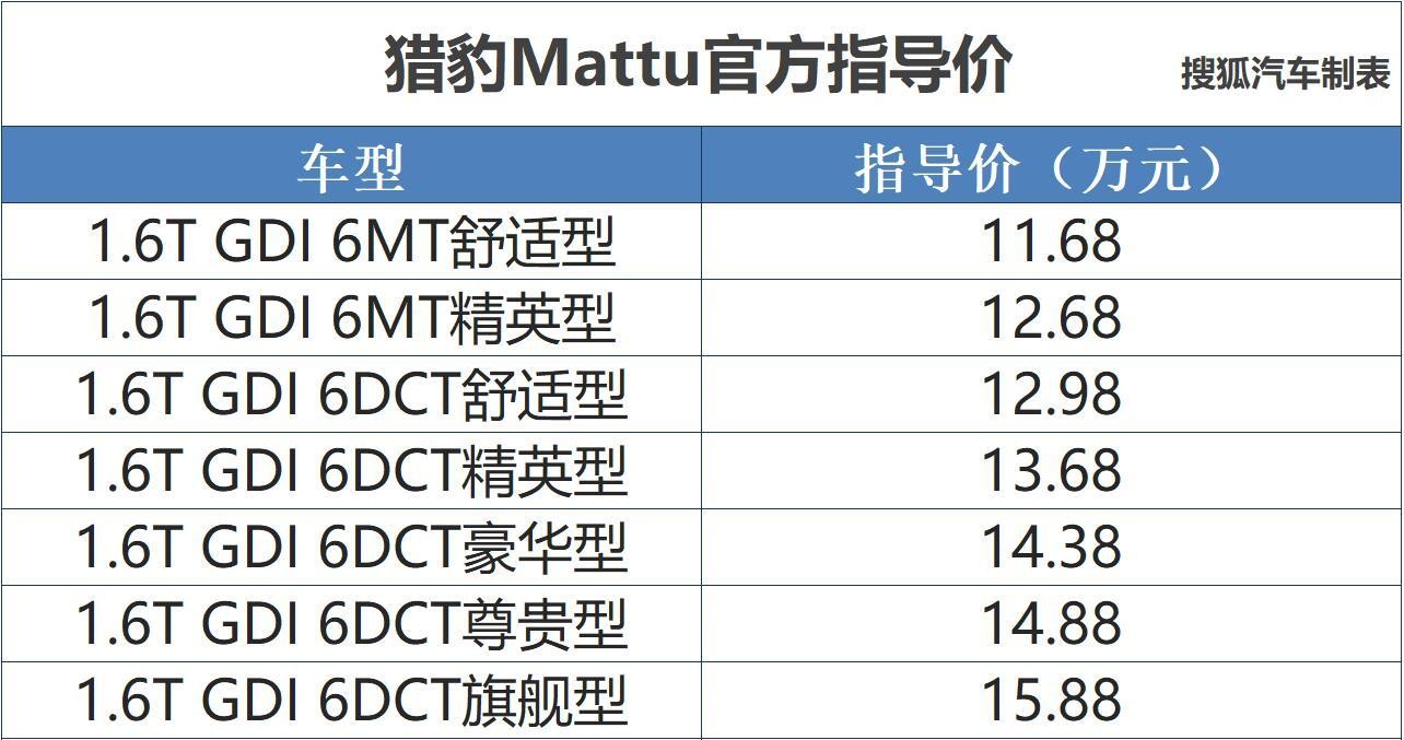 猎豹Mattu正式上市 售价11.68-15.88万元