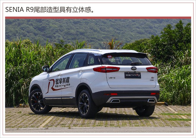 新车侧面线条彰显立体感,双腰线设计凸显整车运动气息。SENIA R9尾部线条更为丰富,横置式LED光导组合尾灯向两侧延展,配以中间凌厉的线条,整体拉伸横向视觉效果;新车黑色保险杠带有反光条,配以底部银色护板两侧双边共两出矩形尾排,整体更具运动范儿。