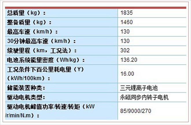 动力方面,E20X搭载由永磁同步内转子电机和三元锂离子电池组成的纯电动力系统。其中,电动机最大功率85千瓦,峰值扭矩270牛米,三元锂离子电池由安徽江淮华霆电池系统有限公司提供;工况最大续航里程302公里,30分钟最高车速为每小时130公里。