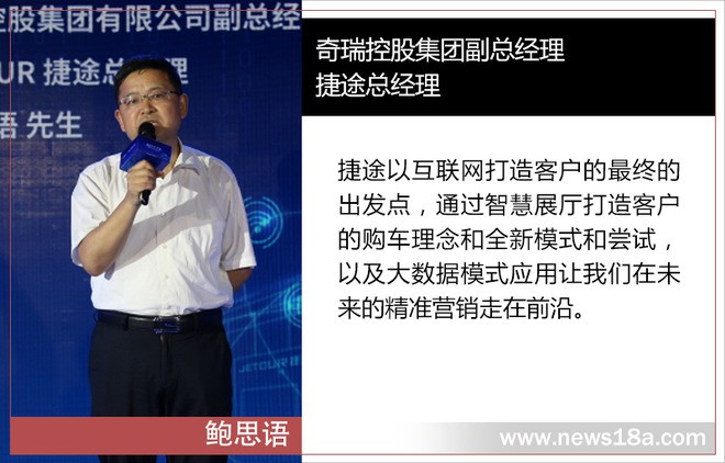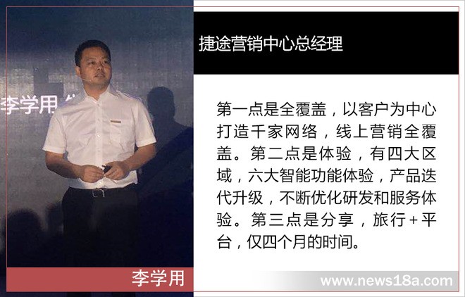 关于新渠道策略模式,捷途营销中心总经理李学用介绍到:“第一点是全覆盖,以客户为中心打造千家网络,线上营销全覆盖。第二点是体验,有四大区域,六大智能功能体验,产品迭代升级,不断优化研发和服务体验。第三点是分享,旅行+平台,仅四个月的时间。”捷途智慧展厅所带来的新渠道策略模式将改变传统4S店的营销模式,同时改善传统营销弊端。