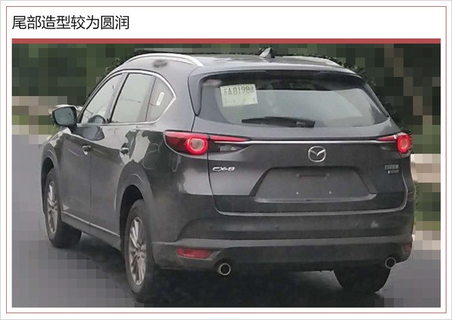 CX-8是马自达旗下全新中大型SUV,新车已于今年北京车展期间正式发布,随后将由长安马自达进行投产。新车尾部较为圆润,两侧不规则造型LED光源尾灯,配合上方高位刹车灯,点亮效果十分醒目。动力方面,国产版CX-8有望搭载2.5升自然吸气发动机。