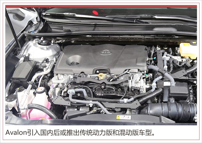动力方面,全新一代Avalon提供3.5升V6自然吸气发动机和2.5升发动机与电动机组成的混合动力系统。全新一代Avalon引入国产后预计将在动力方面进行调整,在保留2.5升混合动力系统的基础上,有望推出搭载2.5升自然吸气发动机的普通燃油版车型。