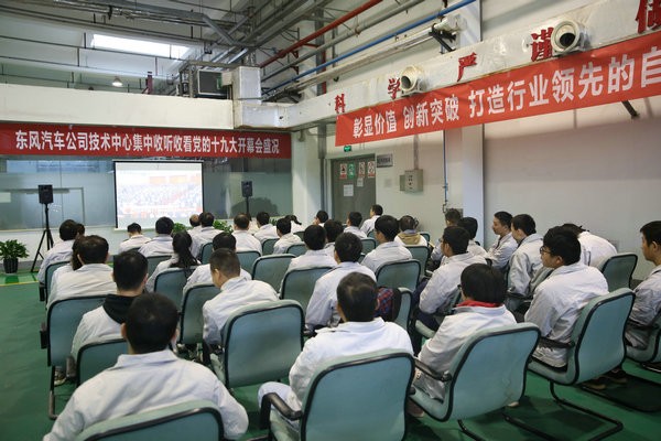 | 10月18日上午,东风汽车公司技术中心组织集中收听收看党的十九大开幕会盛况 |