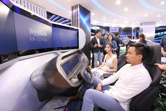 2018北京车展上,参观者争相体验东风风神WindLink3.0智能系统