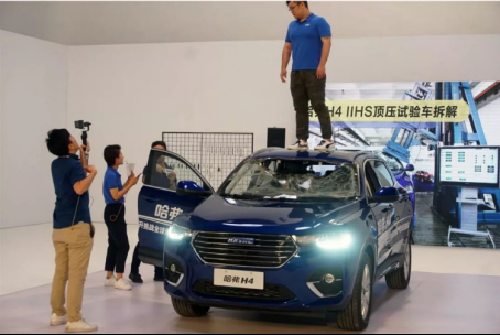 相信在这场暴力拆车直播之前,大家都对哈弗H4挑战IIHS还留有深刻的印象。IIHS全称Insurance Institute for Highway Safety(美国公路安全保险协会),是世界安全标准的重要组成部分,它是有美国保险业自主,并不是盈利机构,所以其严苛性和公正性都值得肯定。在国内,考量车顶的测试非常少,敢于挑战IIHS顶压测试的车企更不多,而哈弗H4就是其中之一。