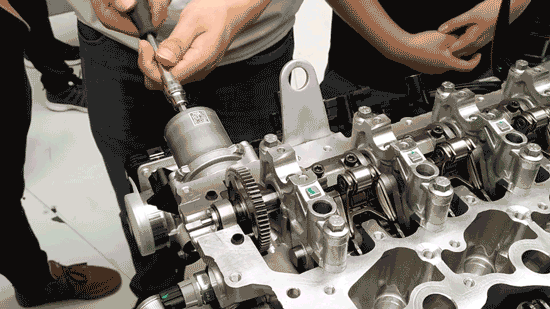 (手旋CVVL电机,展示CVVL可变气门升程技术的工作原理)