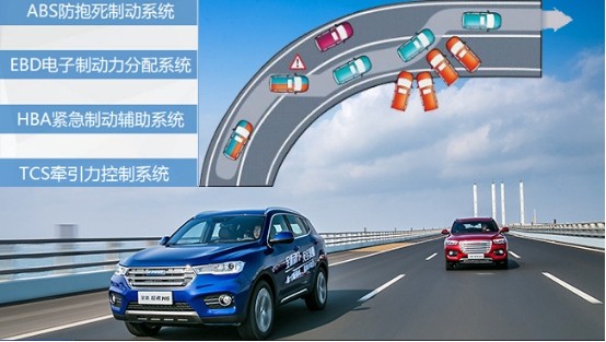 在具体功能上,ABS防抱死会在紧急制动时以每秒几千次的频率对车辆进行“点刹”,避免在制动时车轮因抱死而失去转向能力和稳定性;EBD是ABS的附加功能,通过监测四轮状况,分配制动力,平衡轮胎有效地面附着力,防止出现甩尾和侧滑;HBA紧急制动辅助会监控驾驶员踩刹车踏板的频率和力量,在紧急时刻提供辅助刹车制动力,缩短刹车距离,确保车辆安全;TCS牵引力控制通过车身传感器监测车辆行驶状态,通过控制点火时间、供油系统调整动力输出。