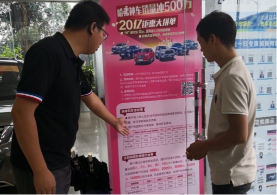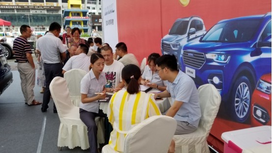 (郑州销售人员正在给哈弗粉丝讲解活动规则和车型)