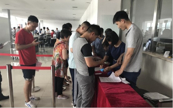 (搭伙拼团的消费者正在咨询并准备办理购车手续)