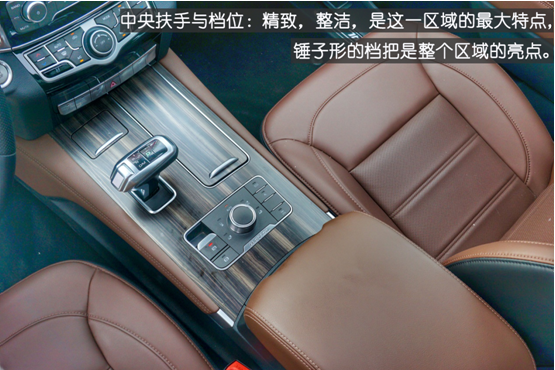 本人最中意的是哈弗H9挡位和中央扶手的设计,喜欢他的平整与精致,全木纹装饰板配以银色边框,显得很细腻。多年的试车经验让我形成了一个独特的观点——那就是评价一辆车内饰的标准,更多关注挡位与中央扶手的区域。这个位置如果设计得不工整,制作得不精细,很难凸显整车的档次,这也是最显功夫与品质的地方。哈弗H9这一区域上最大的亮点还不是工整与精细,而是那个设计独特的“挡把”。哈弗H9的内饰整体上很和谐,科技感十足。很多人认为H9的内饰相对平庸,我倒不这么认为,中规中矩的设计方能体现豪华感,因为豪华已经被定义过了,想要重新颠覆人们的认知着实不容易,毕竟这款车还是要符合消费者的普遍需求。