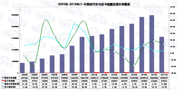 按照轻型货车的标准被管理的皮卡,在大多数人眼里,一直被牢牢打上了工具车的烙印,拉货运输是其主要业务。由于限行、限购、排放标准等一系列政策的禁锢,进城受阻、车身强制贴反光条等差别于乘用车的对待,皮卡让消费者望而却步。随着国外皮卡文化的渗透,消费需求的多样化,以及政策利好消息的不断释放,人们对皮卡的固有印象逐步改变,皮卡市场开始回温。纵观2017年国内皮卡市场,全国主要15家皮卡车生产企业累计销售410665辆车,同比增长18.7%,是近五年之中市场销量份额增长幅度最大的一年,也是2016年之后继续保持两位数高速增长的年份。2018年,国内皮卡细分市场继续保持上扬姿态,1-8月以同比增长13.9%在一片颓势的汽车市场一路逆向上行,让不少人惊喜万分。