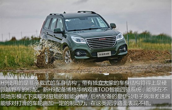 哈弗H9配备了同级车型少见的全地形反馈系统,越野能力较强。全路况AUTO(自动模式)、运动、沙地、泥地、雪地及低速四驱等模式。据测评,哈弗H9通常情况下AUTO模式会根据路面情况自行分配扭矩帮助提供更好的通过性。我期待着未来陪我一起穿越青藏线的H9能有不俗的表现。
