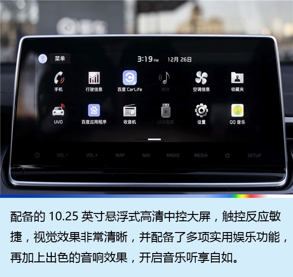 新车支持智联互联系统,同时通过手机APP还能控制部分功能。10.25英寸的中控大屏上移,内部信息功能包括导航、语音控制、在线音乐和全景影像等功能,满足了日常的用车需求。流畅度很OK,唯独只支持百度CarLife,并不支持CarPlay功能,稍微有点遗憾。