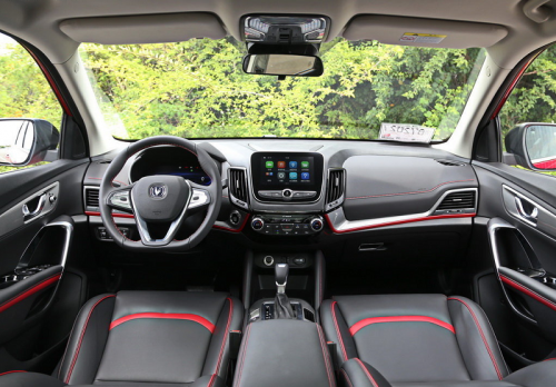 在内饰方面,长安新CS55的第一感觉十分运动,红黑相间的配饰讨好年轻消费群体的眼球。中控大屏整合了in Call智能车载互联系统、集成导航、语音、娱乐、安全、远程车控等多项在线服务,一些操控功能动动嘴就能完成,这一点对于驾驶者来说还是相当实用的,减少了手忙脚乱的繁复操作,安全性也更高。