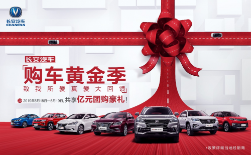 最后有一个好消息要告诉大家,为回馈广大消费者,长安汽车将面向全国推出“购车黄金季致我所爱真爱大回馈”活动。2019年5月18日-5月19日,凡在长安汽车授权经销商店购买长安汽车旗下车型,将享受亿元团购豪礼。近期有购车计划的朋友们,心动不如行动,赶紧去当地经销商咨询具体政策吧!