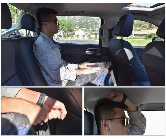 经由同行身高为182厘米的小伙伴实测,调整至合理的乘坐姿态后,前排头部空间为1拳。