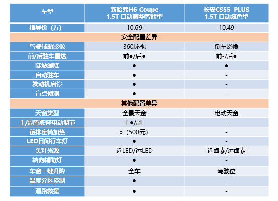 配置就像是一辆车的“附加值”,在相近的价格中,消费者自然更倾向于附加值高的那款车。而且丰富的配置,可以令消费者的驾乘体验更加安全、便利、舒心,所以在配置对比中,新H6 Coupe胜出毫无疑问。