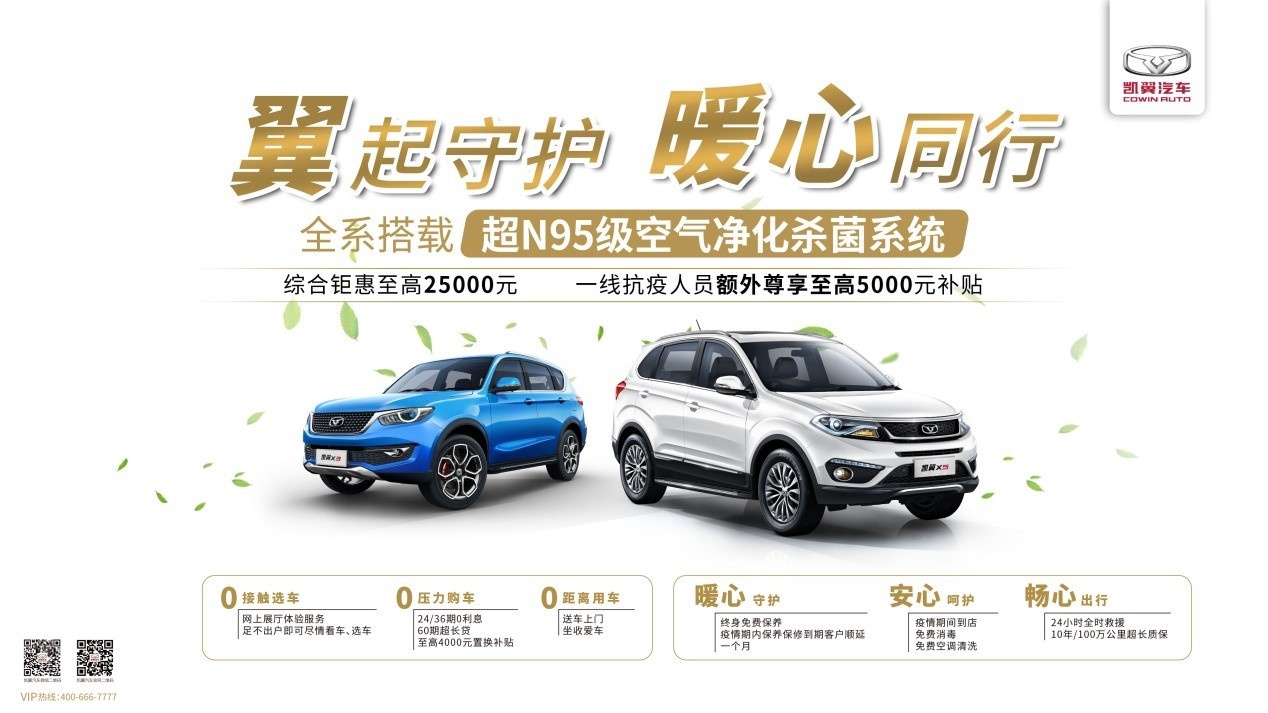 在这个共同抗“疫”的关键节点,凯翼汽车秉承有温度的品牌理念,推出“翼起守护,暖心同行”系列活动,实现消费者看车、购车、用车的一站式服务,让疫情期间温暖依旧。疫情面前,凯翼汽车想消费者所想,以贴心周到的服务,全方位解决消费者购车及用车问题,为抗击疫情贡献凯翼力量。