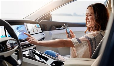 除仪表外的4块屏都可通过连接终端设备,实现影音娱乐的在移动设备端与车机端的无缝连接。
