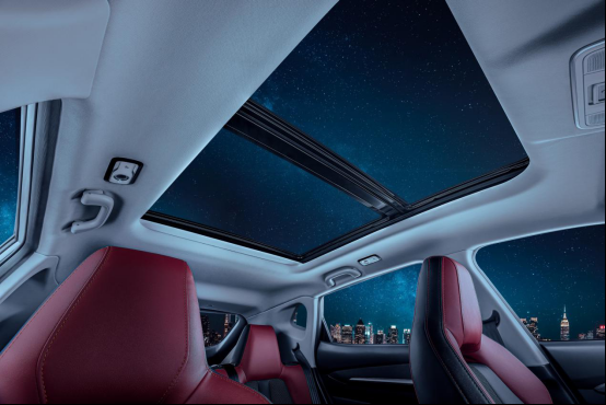 回形空调出风口,声微风柔,采用了三层镀铬设计,红色内饰点缀,与中控竞速光带相呼应,左右对称分布,这也是为了中和不规则设计带来的失衡,实现视觉上的平衡。