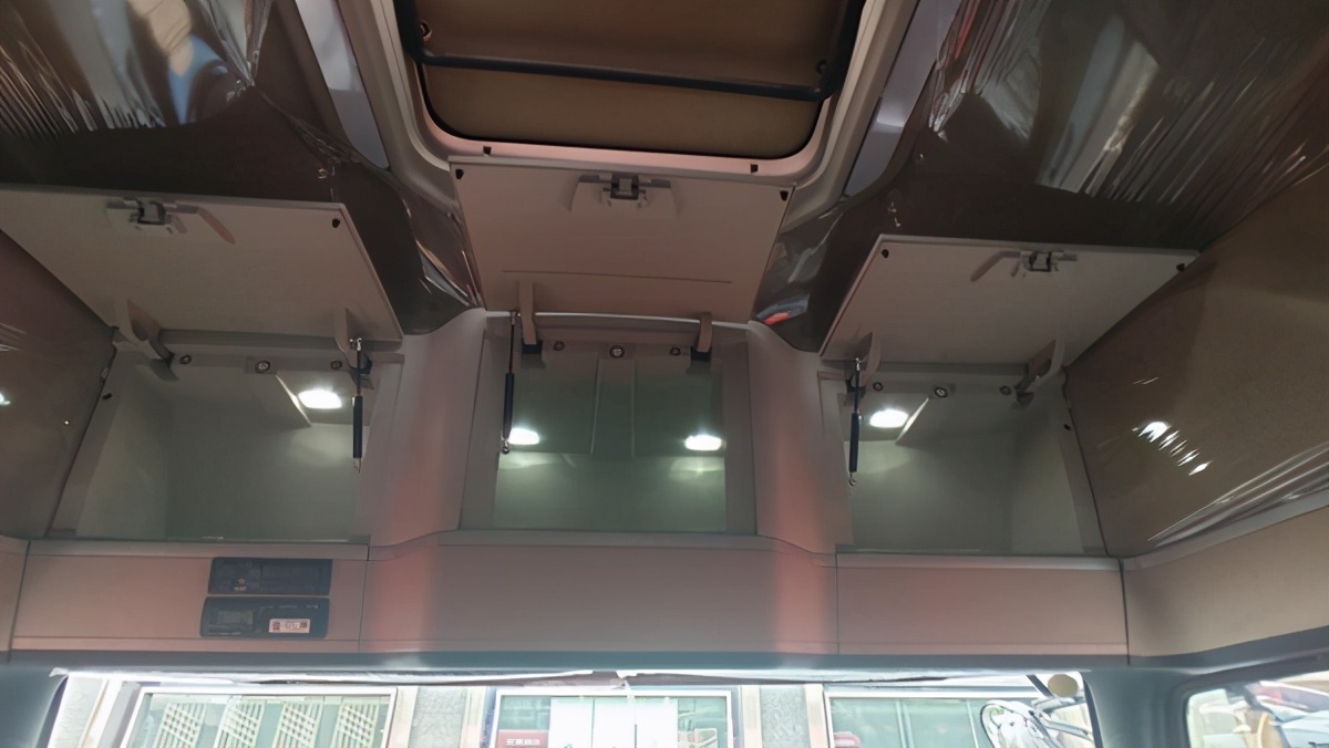 豪沃TH7拥有上下双卧,下卧铺宽度达到1米,下卧铺设有多功能控制区,并带有储物格和一个可随意调节的照明灯。下卧铺还设有防护,运输人再也不用担心在睡觉时遇见急刹车了。