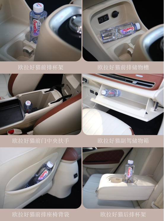 再来看看储物空间,欧拉好猫的车内储物格数量要比飞度多不少,而且储物格容积也都更大一些,虽然飞度有一些比较人性化的储物格设计,例如中控台两侧的杯架等等,但从整体来看还是不如欧拉好猫的储物格布局来得实在。