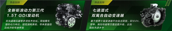 (传祺影豹全新钜浪动力第三代1.5T GDI发动机和7速湿式双离合自动变速器示意)